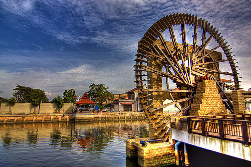 Kincir air Kesultanan Melaka setinggi 13 meter ini dibina semula bagi mengembalikan nostalgia dan kepakaran teknologi pengairan pada zaman tersebut. Kincir air merupakan alat untuk menimba dan mengalirkan air dari anak sungai untuk kegunaan pedagang.